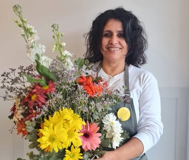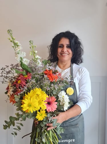 Durante más de 30 años, he compartido mi pasión en talleres presenciales: un espacio donde cada florista en ciernes descubre cómo traducir sus emociones en arreglos inolvidables.